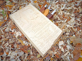 Пам'ятний знак пам'яті Віктора Бердника, різьблення по дереву, липа, тонування, лляна олія. 2024.